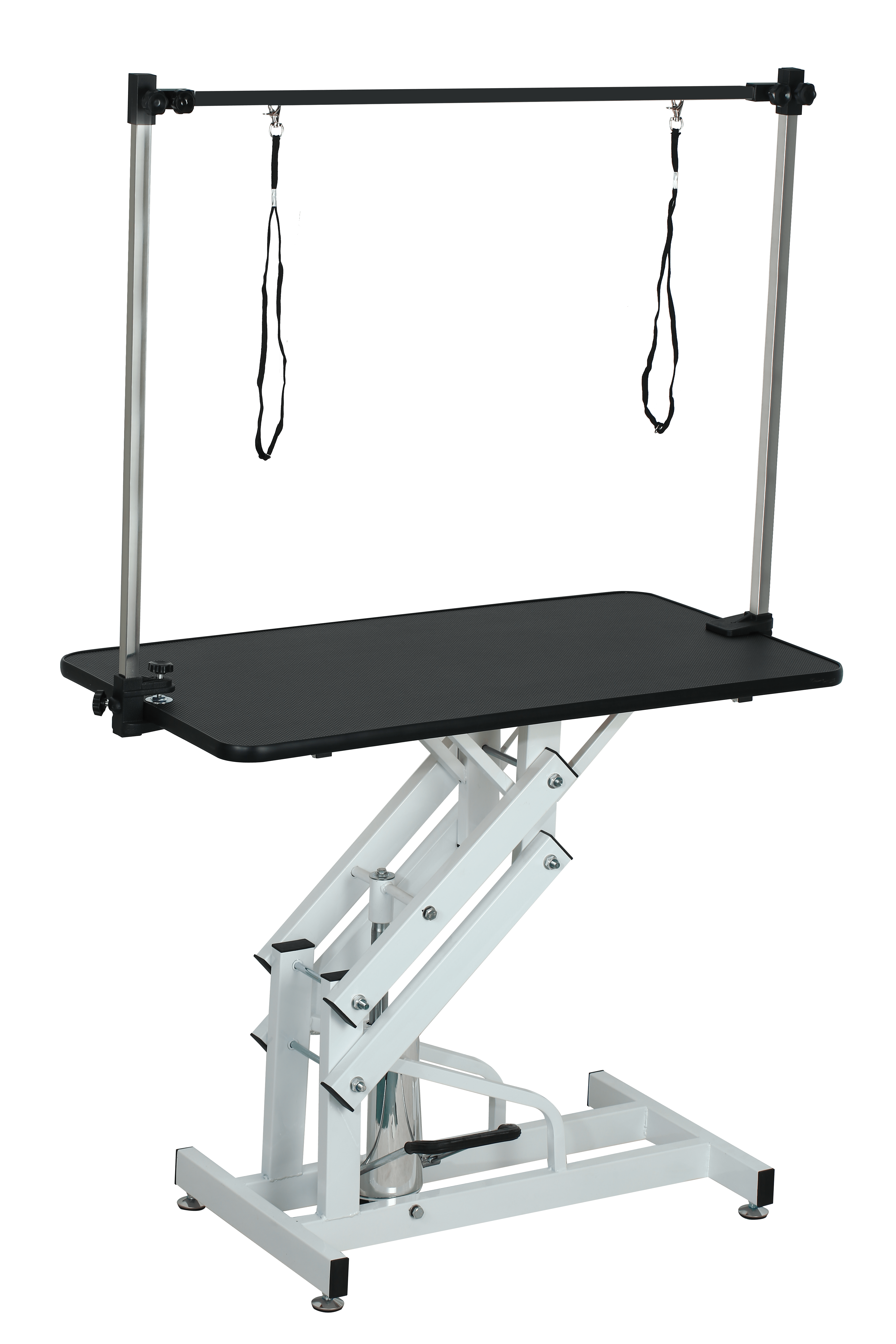 Why You Need a Folding Pet Grooming TableIf you have a pet, it's necessary to trim the pet hair, so what we are going to recommend to you is this GT-101 Adjustable Heavy Type Hydraulic Grooming Table. This hydraulic grooming table is made of high quality steel frame, MDF board and PVC surface mat, which is sturdy and durable. This table is adjustable, and you can adjust to the most suitable height for groomer. And the attached necklace is convenient for you to fasten the pet. It has a strong bearing capacity of 50-60kg, which is reliable. So don't hesitate, just buy it!