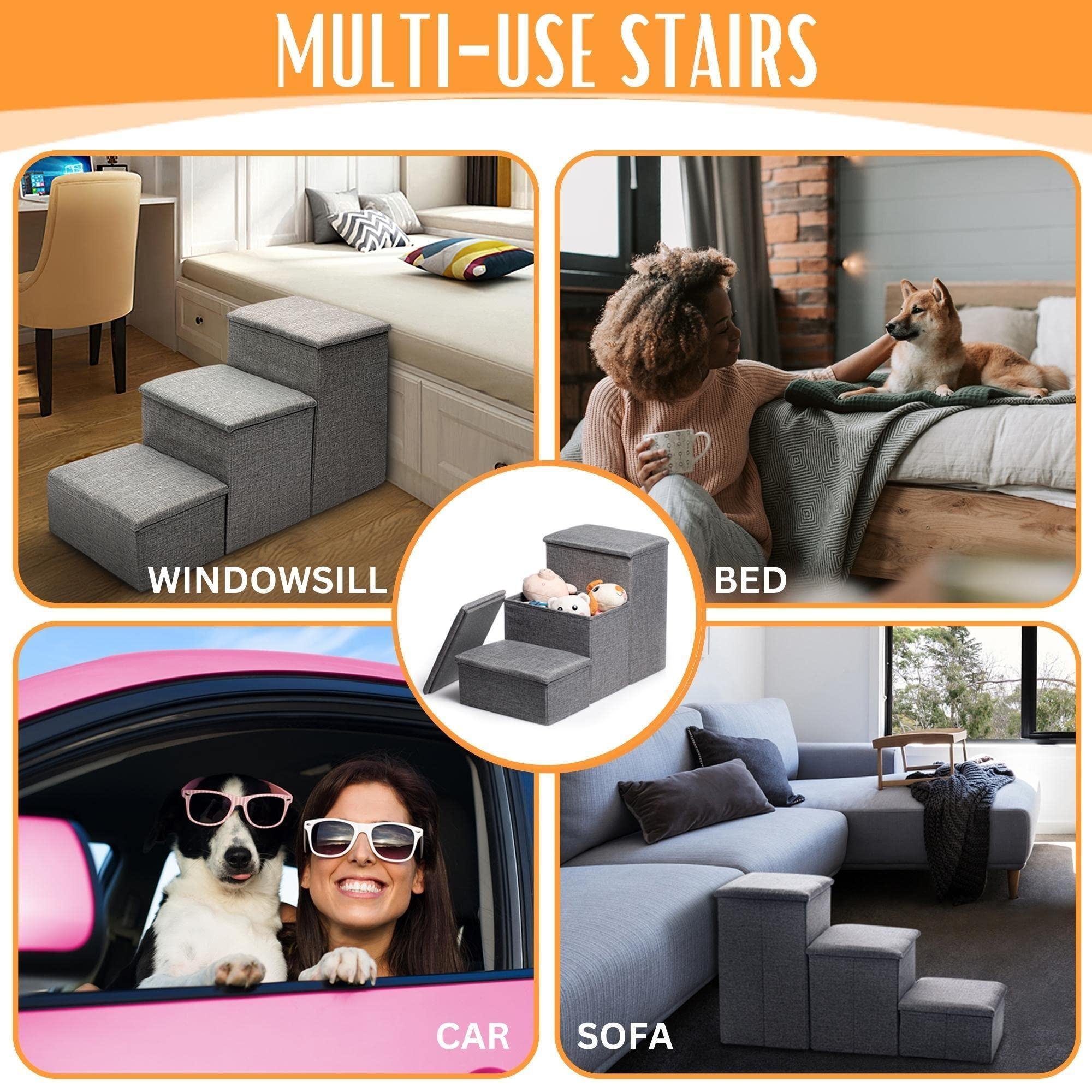 Gray Dog Stairs for High Beds or CouchFoldable Dog Steps With Storage Pet Steps for Small Dogs Medium Dogs Puppy Stairs