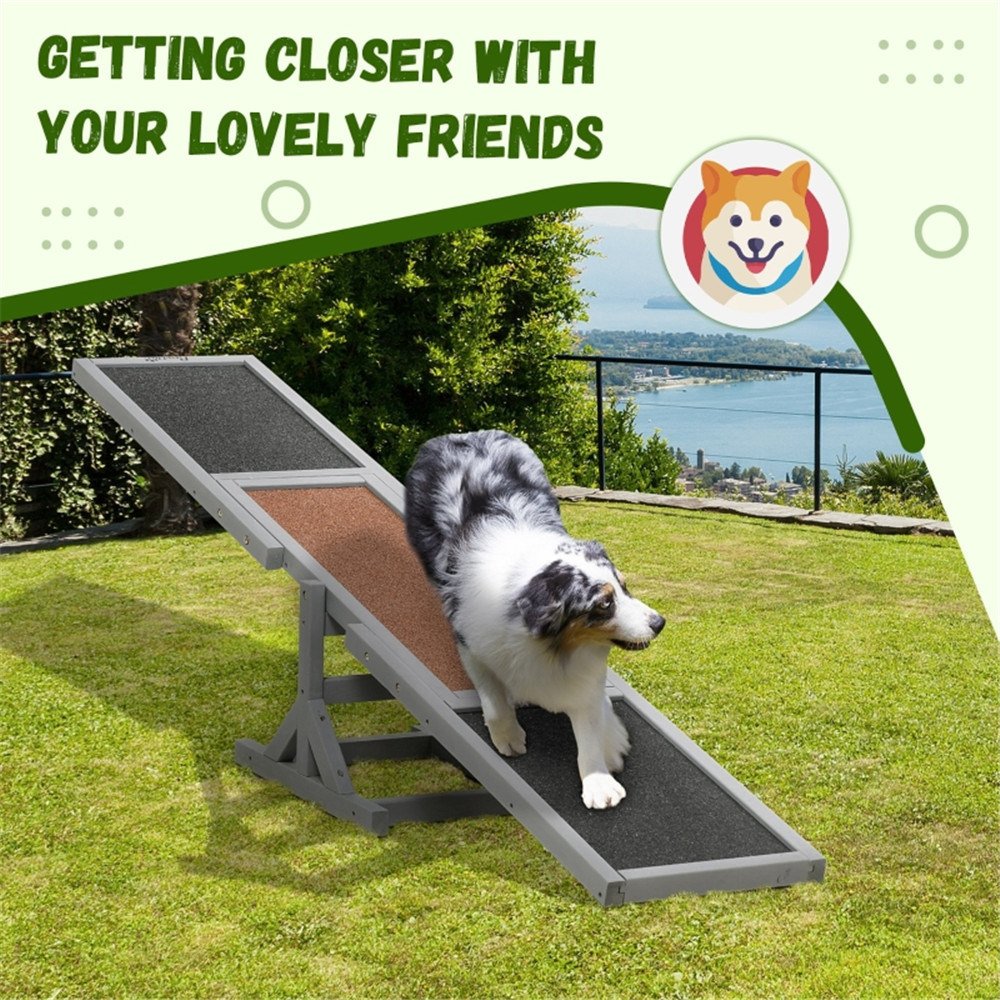 Features:- Made with fir wood for a stable structure with easy maintenance- High traction anti-slip surface for secure footing- Provides your pet with a fun way to get mental and physical exercise- Recommended for pets under 110 lbs.- Assembly is requiredSpecification:- Color: Gray, Brown, Black- Material: Fir Wood- Overall Dimensions: 70.75" L x 11.75" W x 11.75" H- Maximum Height: 21.25" H- Board Thickness: 5 mm- Weight Capacity: 110 lbs.Package Includes:- 1 x Pet Seesaw- 1 x Manual